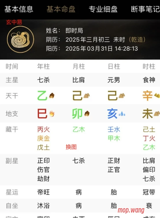 “每个人的命运真的自有定数么?自从开始接触国学后,我使用过众多app工具,什么卜易居,测测,玄中易等八字排盘工具,其中「玄中易」最让我用得顺手。一个字工具多。百度一搜索一大把,随便选一个顺眼的,八字排盘无非就是两作用:排盘和解盘;为什么说「玄中易」最让我用得顺手,因为除了排盘工具多之外,还有两特点,一个排盘免费,二个有AI解盘。