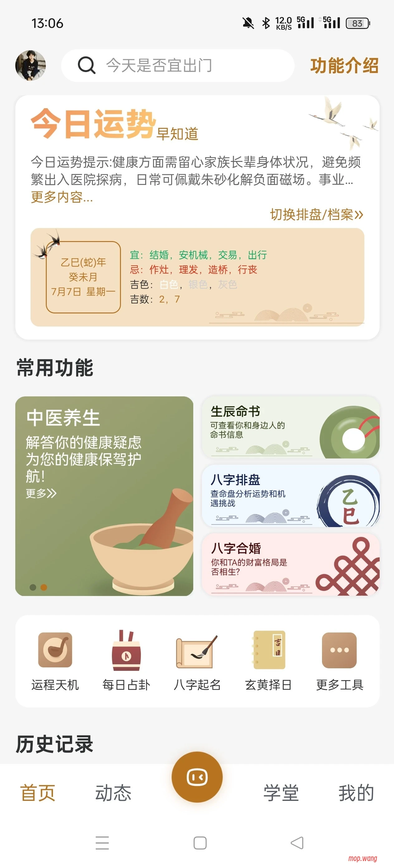 众多工具比如运势排盘、合婚排盘、梅花寻物、每日占卜等,还有全面的个人命书解读。